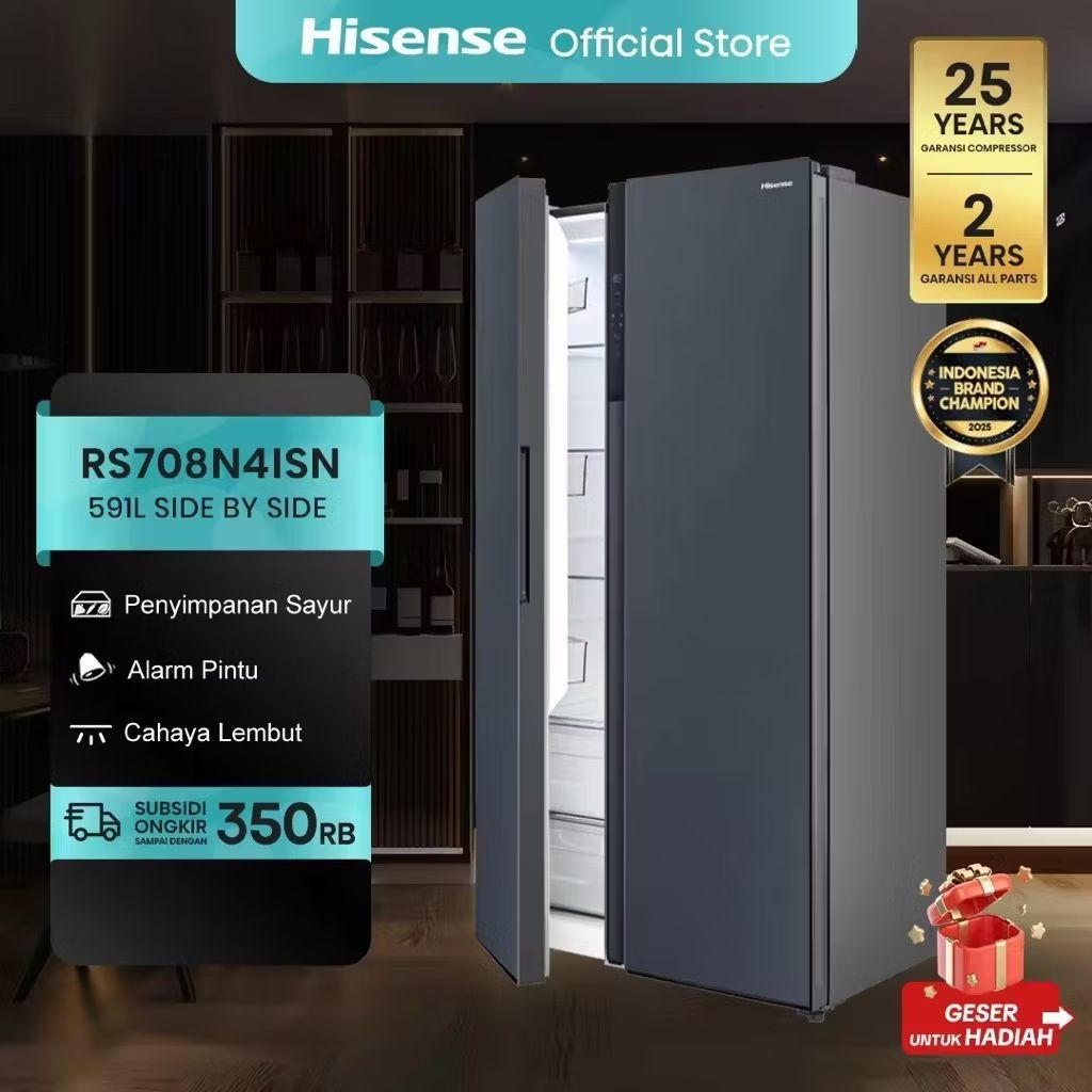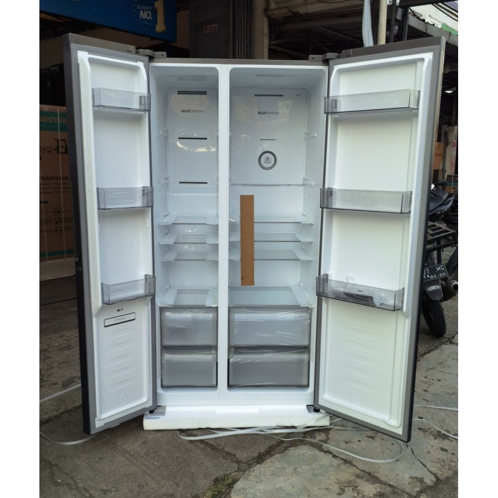 Hisense Kulkas RS708N4ISN Refrigerator Side By Side Kapasitas 591L Warna Silver Inverter Tanpa Bunga Es