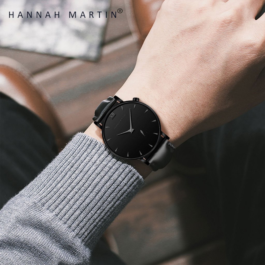 Hannah Martin Jam Tangan Pria 100 PERSEN Original Keren Sangat Tipis Quartz Cowok Kulit Anti Air Men Watch Laki Arloji Men Wa