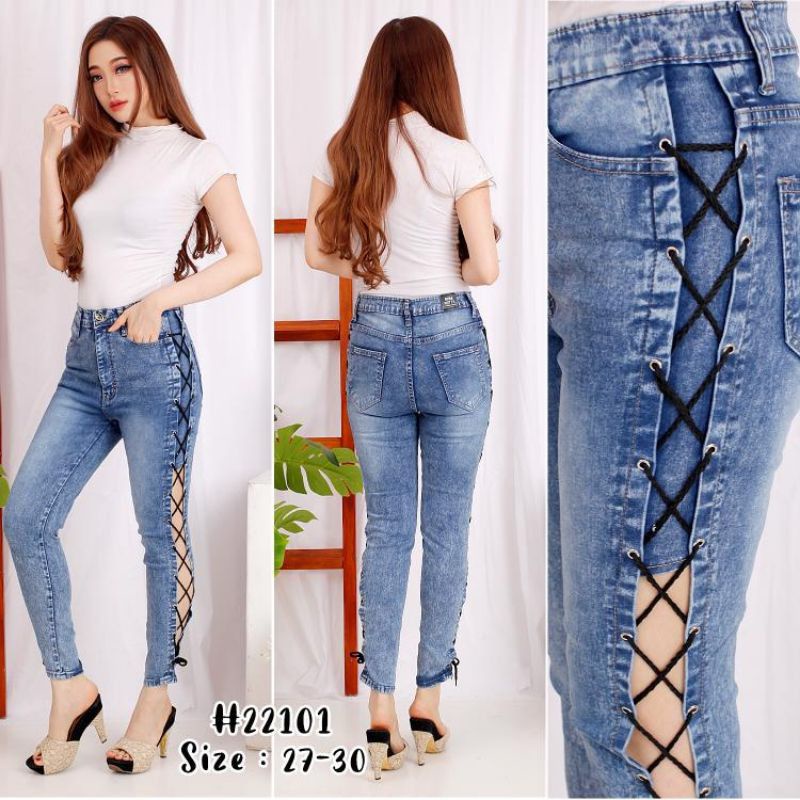 Celana Jeans Import Tali Samping Wanita Jeans Kekinian Cewek Celana Jeans Terbaru Wanita Best Seller