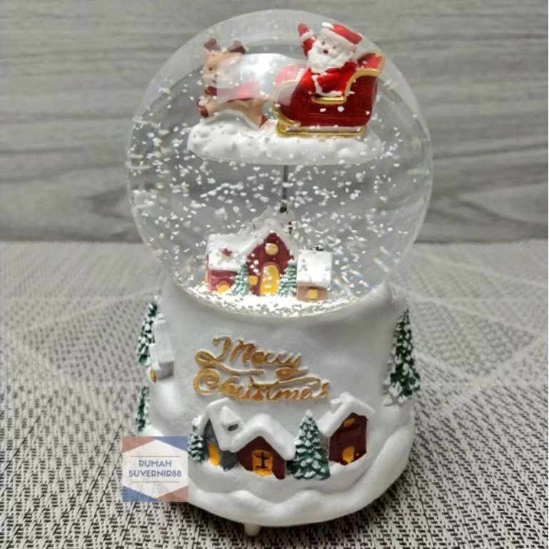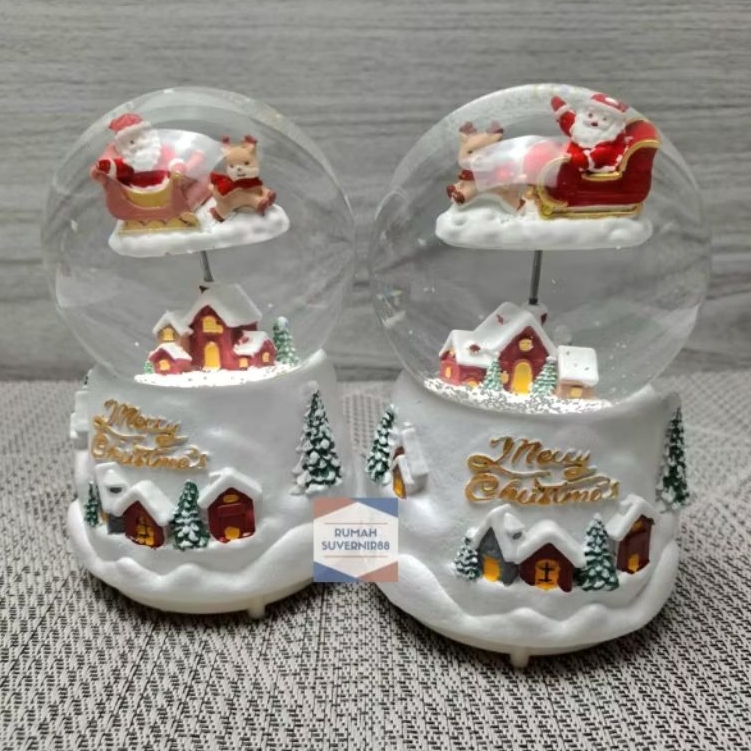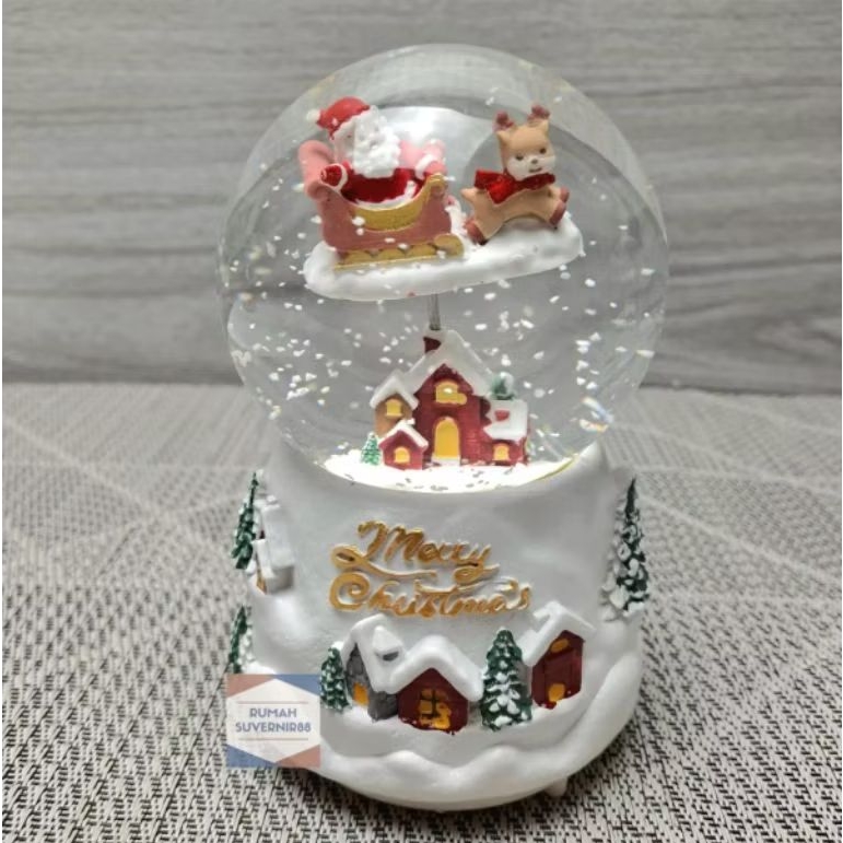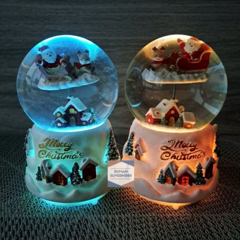 Kotak musik Bola Salju Snowball Kaca Kristal Christmas Snowglobe Lampu Natal Waterball