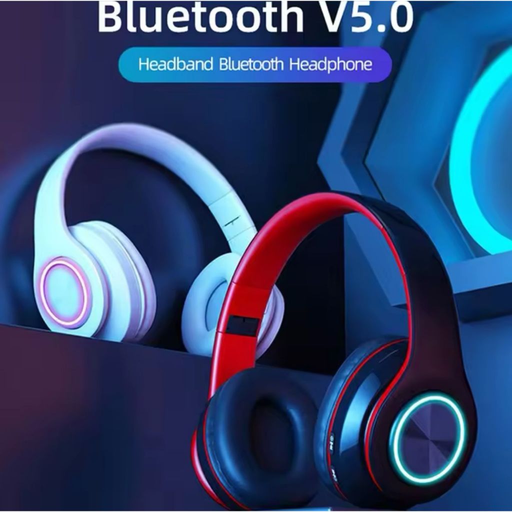 [Star] Headset Bluetooth LED Headphone HiFi Bass Music Wireless 5.3 With Mikrofon Bando RGB Light