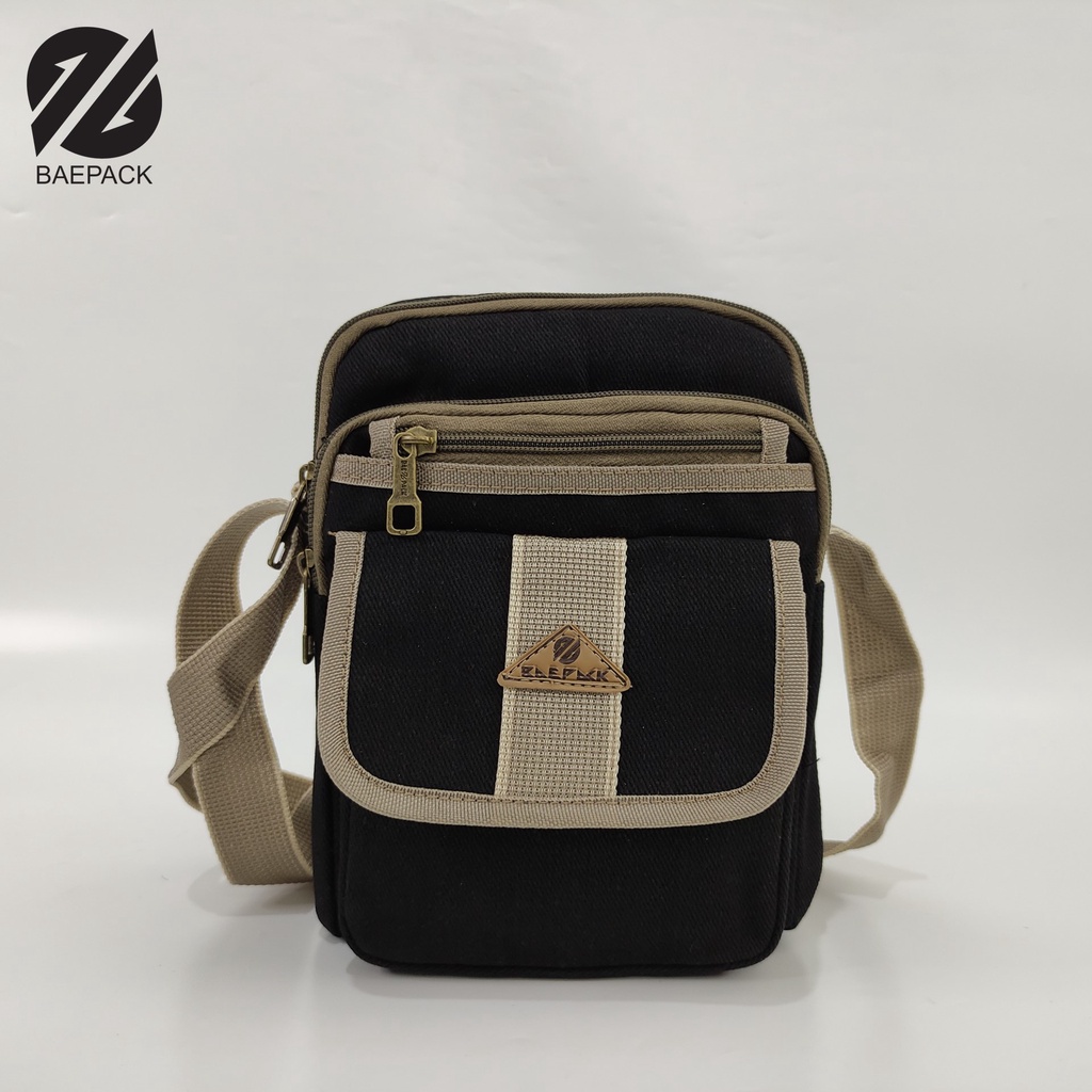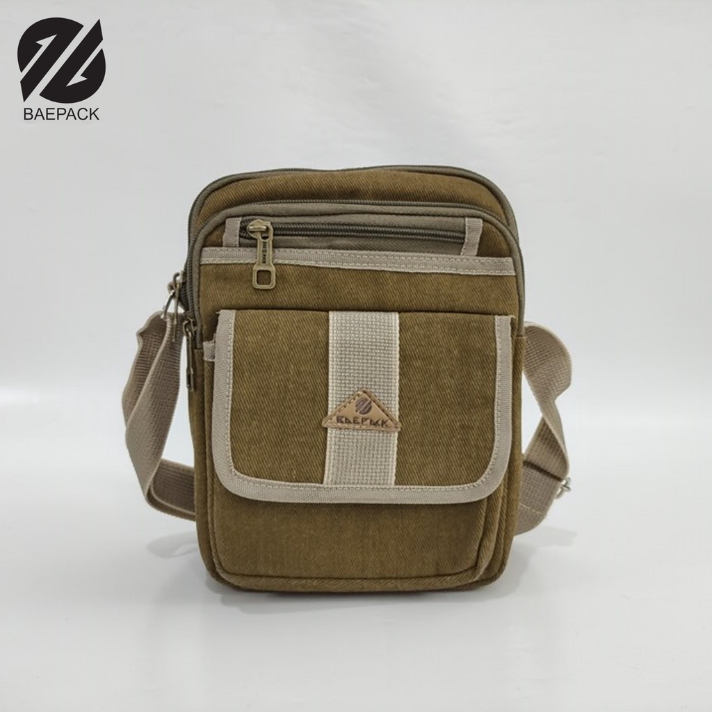 Baepack Tas Selempang Kanvas Pria Alfie Brown Original / Tas Bahu Cowok Wanita Dewasa / Tas Selempang Produsen Lokal Ban