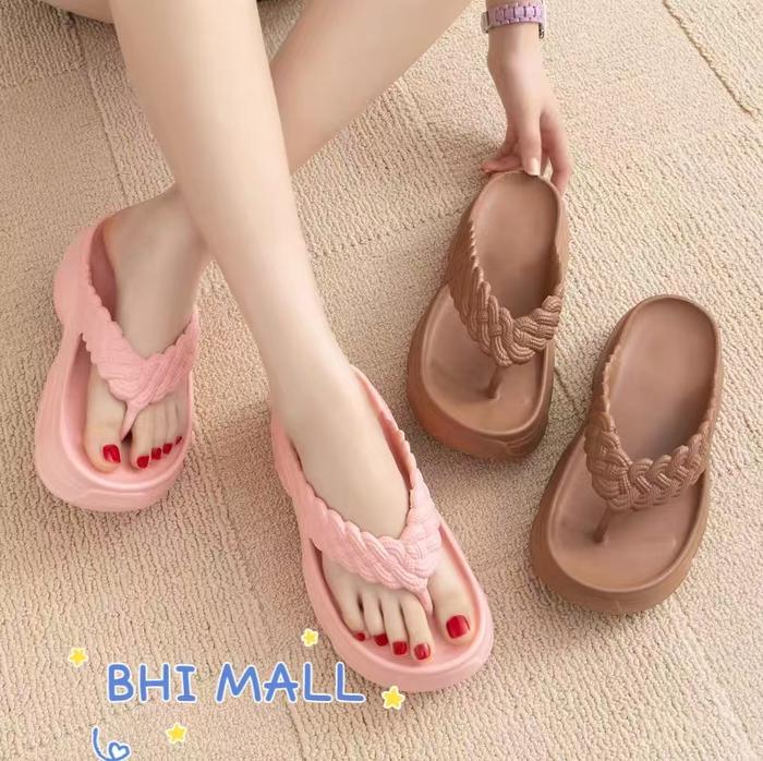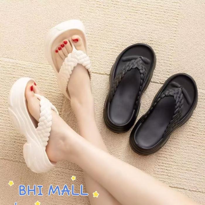 [ASFER]Sendal Wanita Sendal Jepit Wedges Premium Ringan Anti Slip Empuk Tinggi Sandal - Hitam 30/31