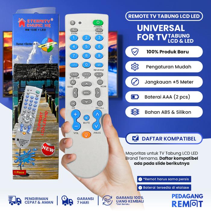 Remot/Remote TV Tabung LCD LED Multi/Universal RM-133E LED + Senter - Tanpa Baterai