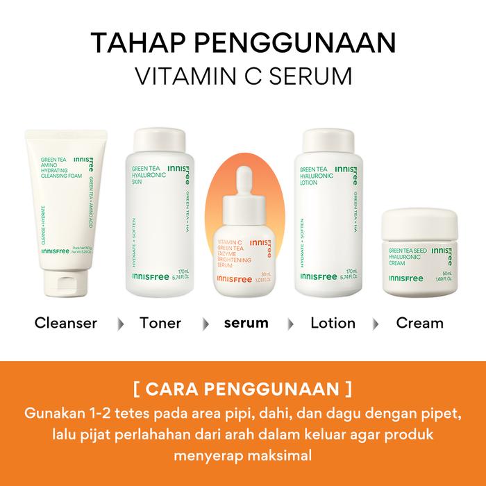 Buy 1 Get 4 Innisfree Vitamin C Green Tea Enzyme Brightening Serum 30ml Bundle - Essence Wajah
