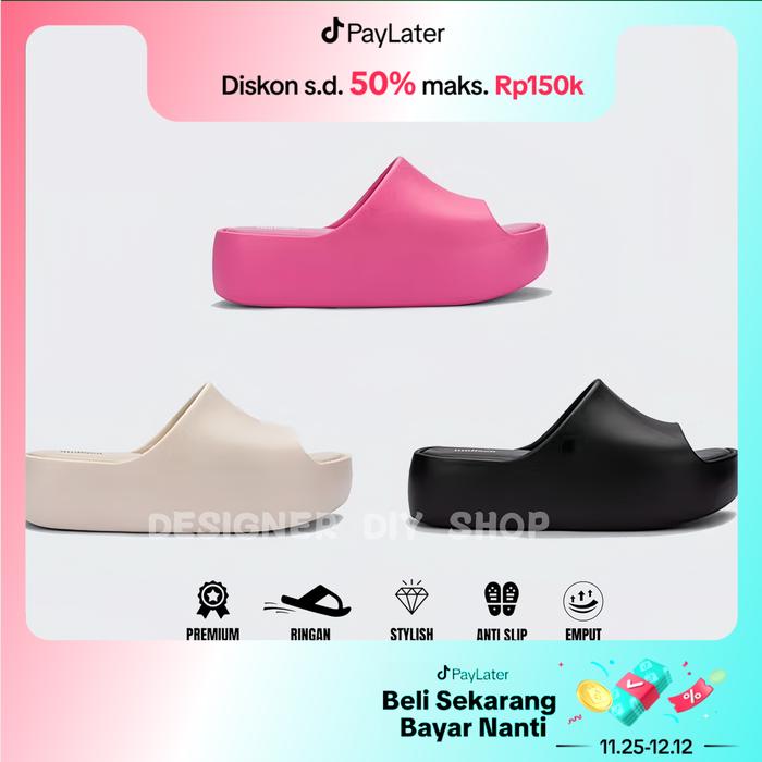 [Best Seller]DIY-Sandal Selop Elegan Wanita Premium Empuk Tebal Sendal Wedges EVA Rubber - Hitam 36/37=23cm