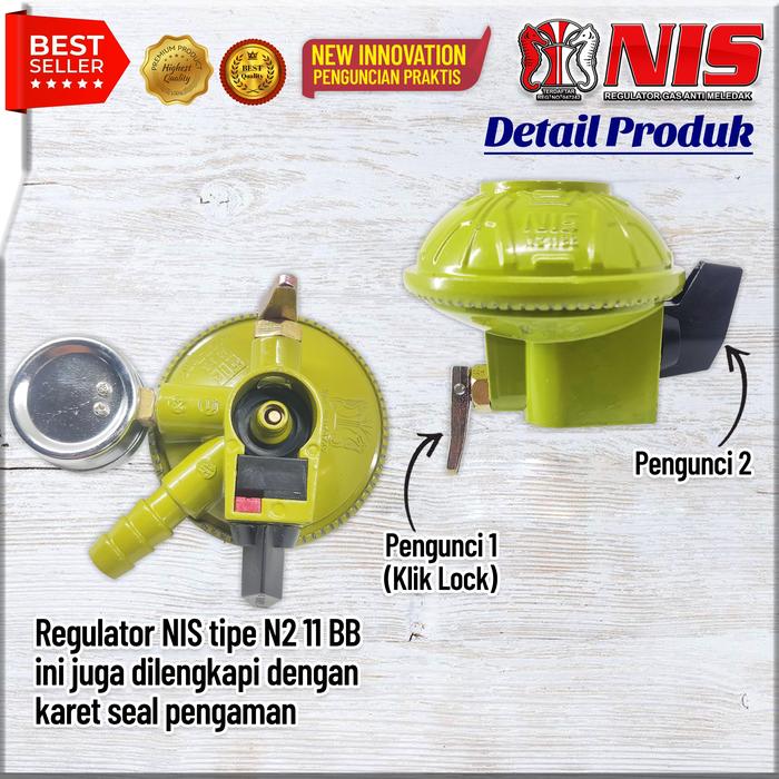 NIS PAKET SELANG GAS HONEYCOMB + REGULATOR GAS KLIK LOCK (N2 11 BB) - Kuning