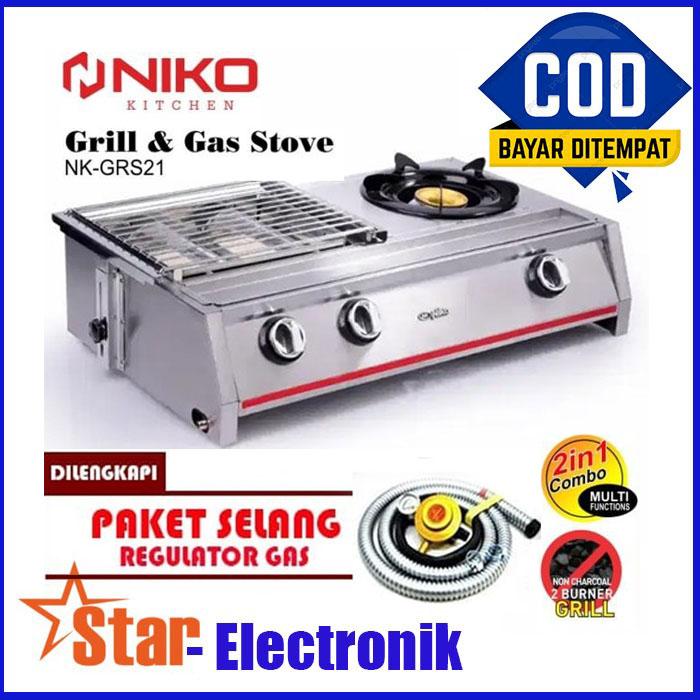 NIKO Kompor Gas & Pemanggang 2in1 NK GRS 21 Grill Stove 2 Burner GRS21 - MURAH BERKUALITAS - KOMPOR SAJA