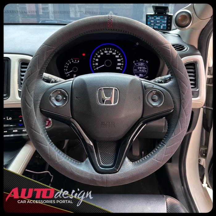 Cover Sarung Stir Mobil Suede Lembut Kualitas Premium Universal Car - Strip Merah