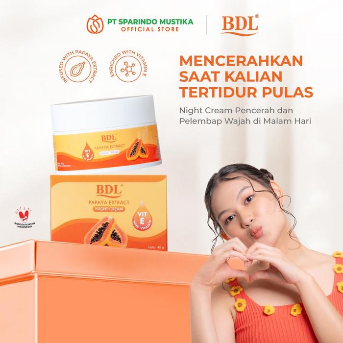 BDL Night Cream With Moisturizer Papaya Pelembab Wajah Menyamarkan Flek Hitam Bekas Jerawat - Night Cream Papaya 48gr