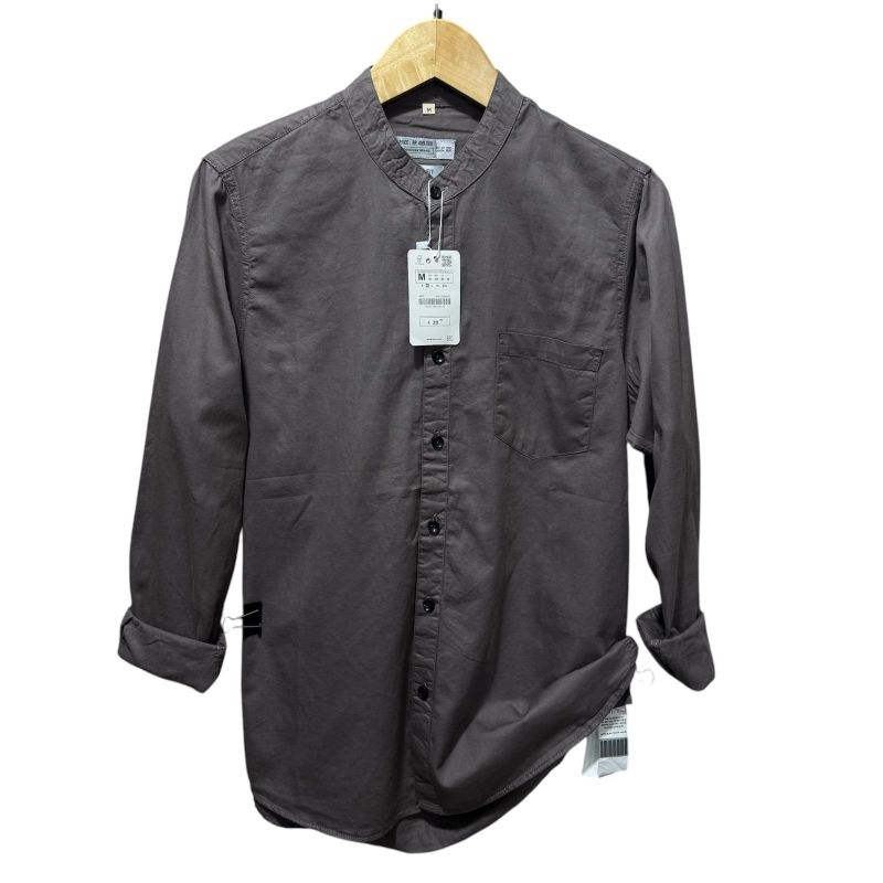 kemeja Zara size jumbo polos pria lengan panjang kerah kemko/sanghai size jumbo slimfit katun twill