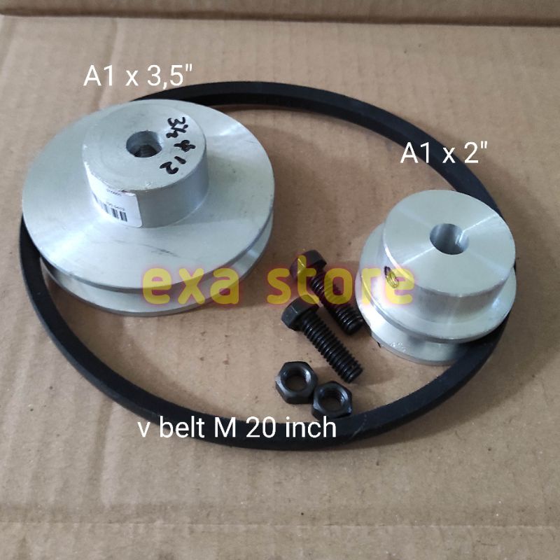Paket pulley transmisi 3.5 inch dan 2 inch plus fanbelt (ukuran baca deskripsi)