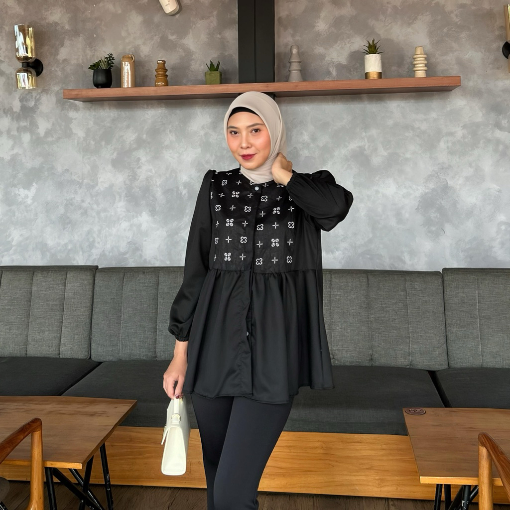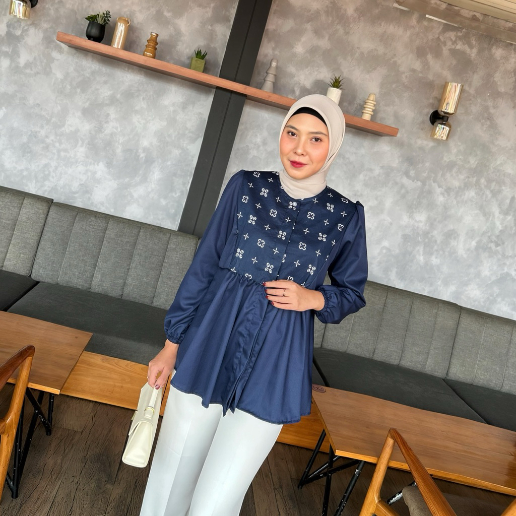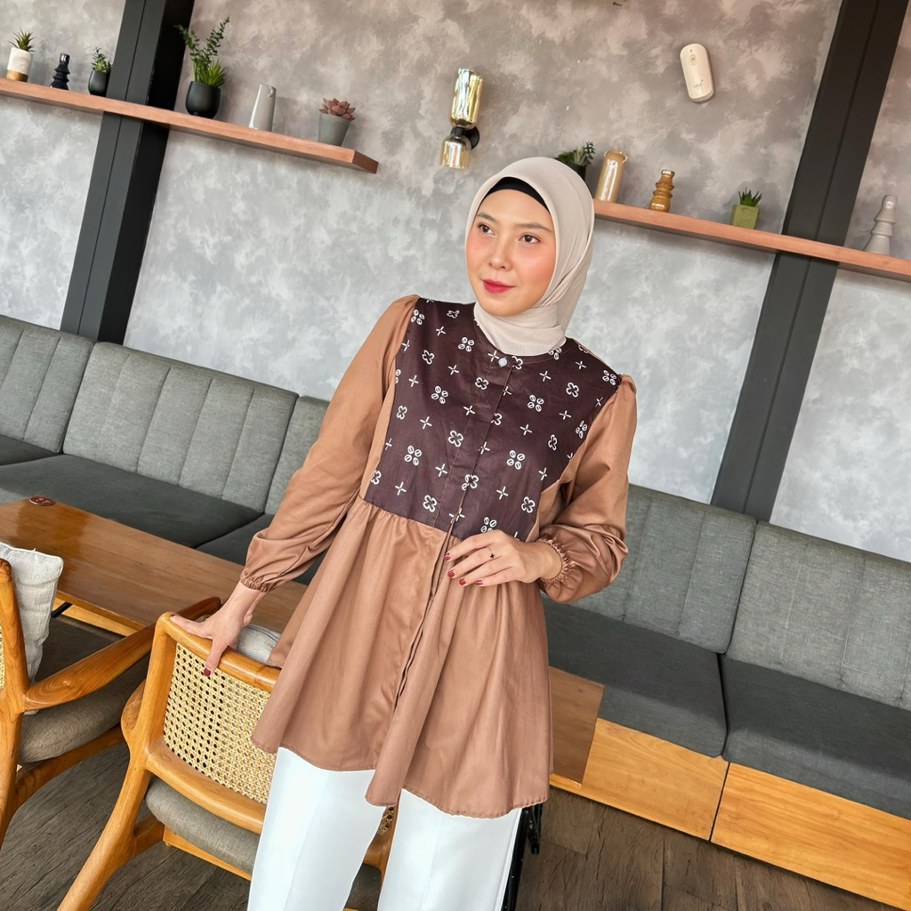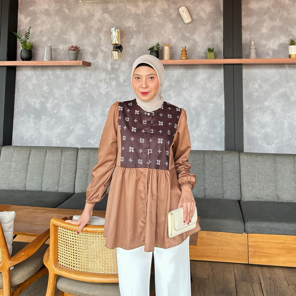 Batik Ravindra Blouse Batik Marisa Atasan Batik Lengan Panjang Katun Kancing Depan