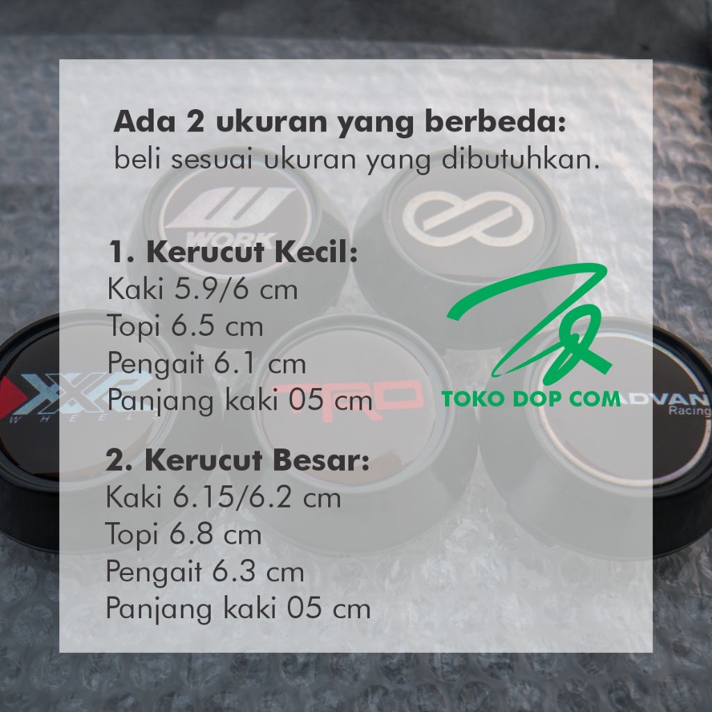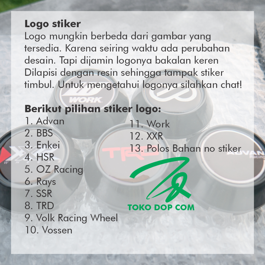 COVER DOP VELG KERUCUT STIKER RESIN TIMBUL ADVAN BS ENKEI HSR OZ RACING RAYS SSR TRD VOLK VOSSEN WORK XXR POLOS 6/6.5 CM