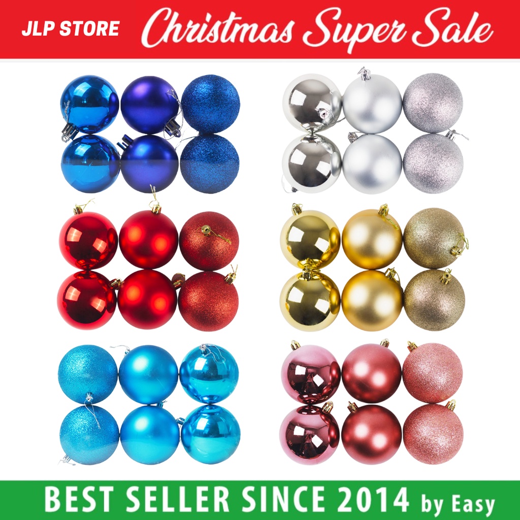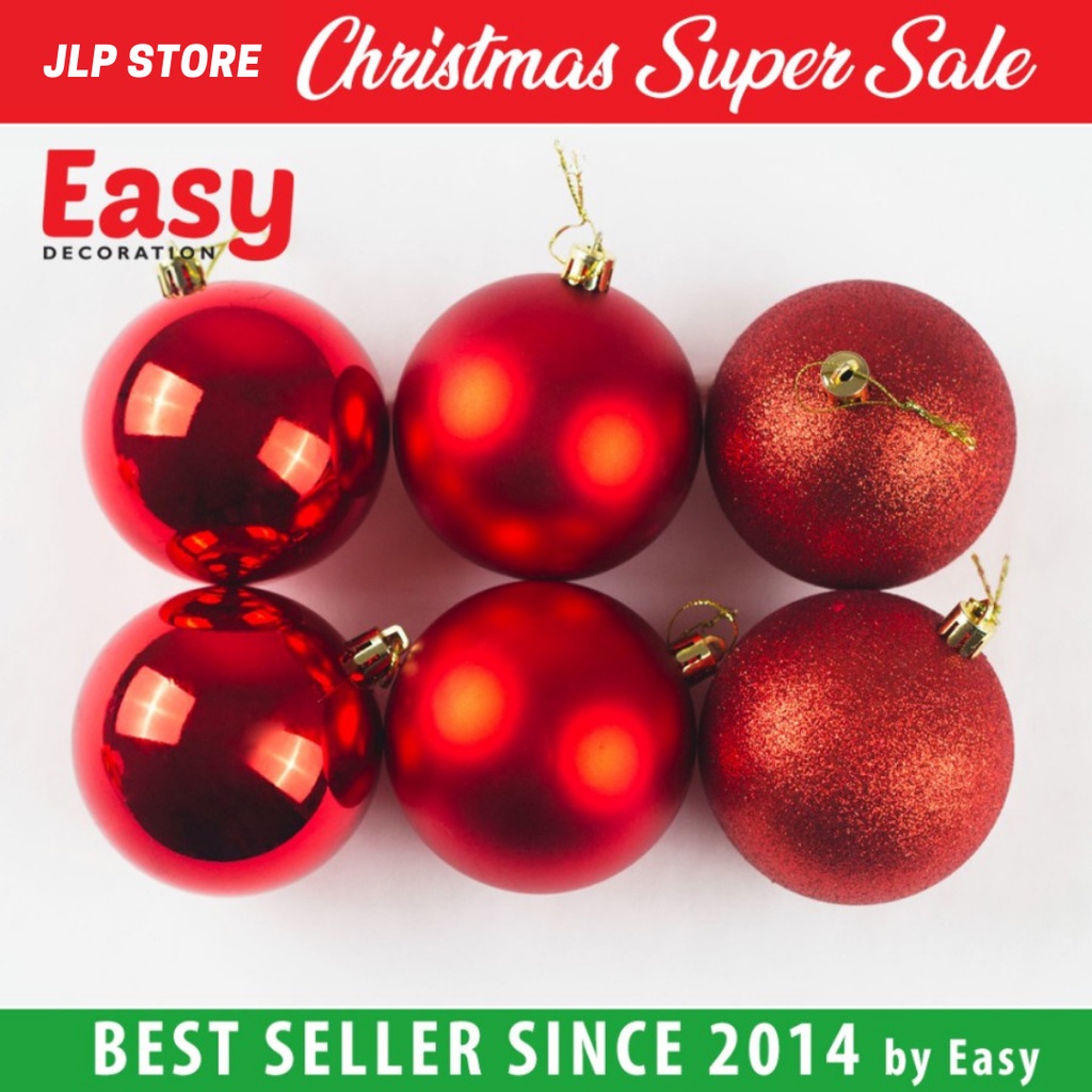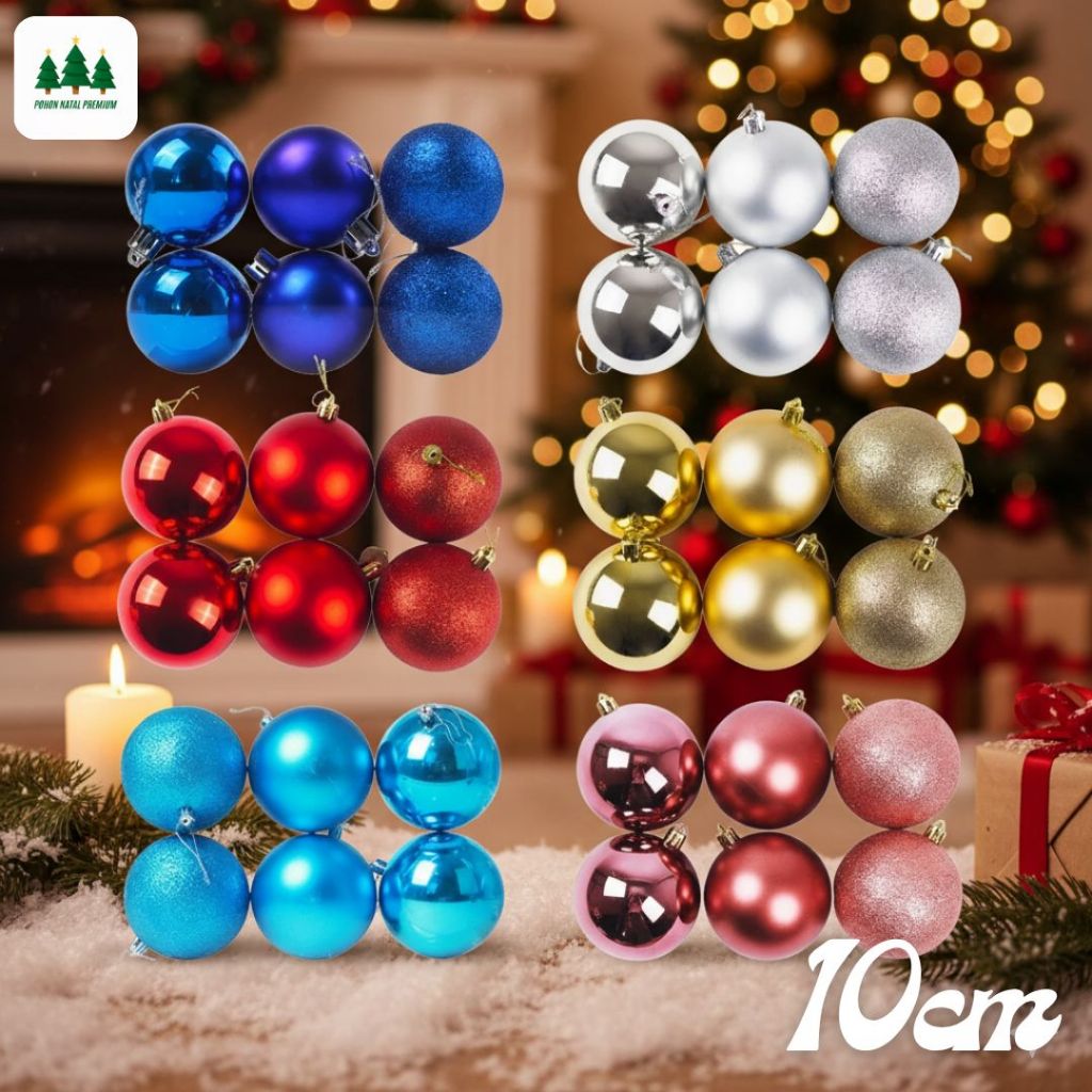 Hiasan Bola Natal 10Cm Gantung Aksesoris Dekorasi Ornamen Pohon Natal Christmas Tree isi 12Pcs