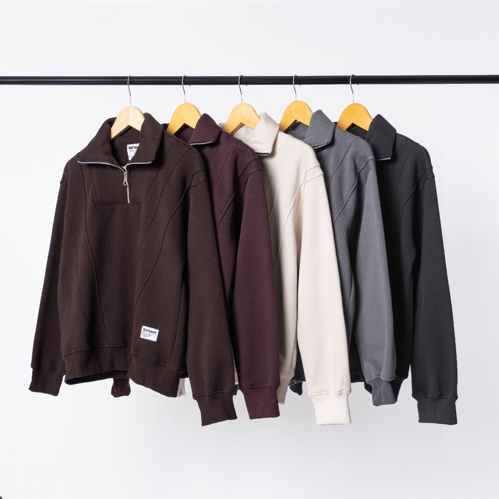 Barhaws - Sweater Half Zipper Boxy Cotton Unisex Atasan Sweatshirt Pria Wanita
