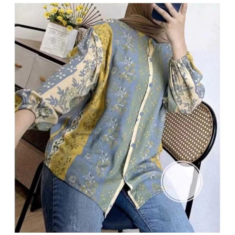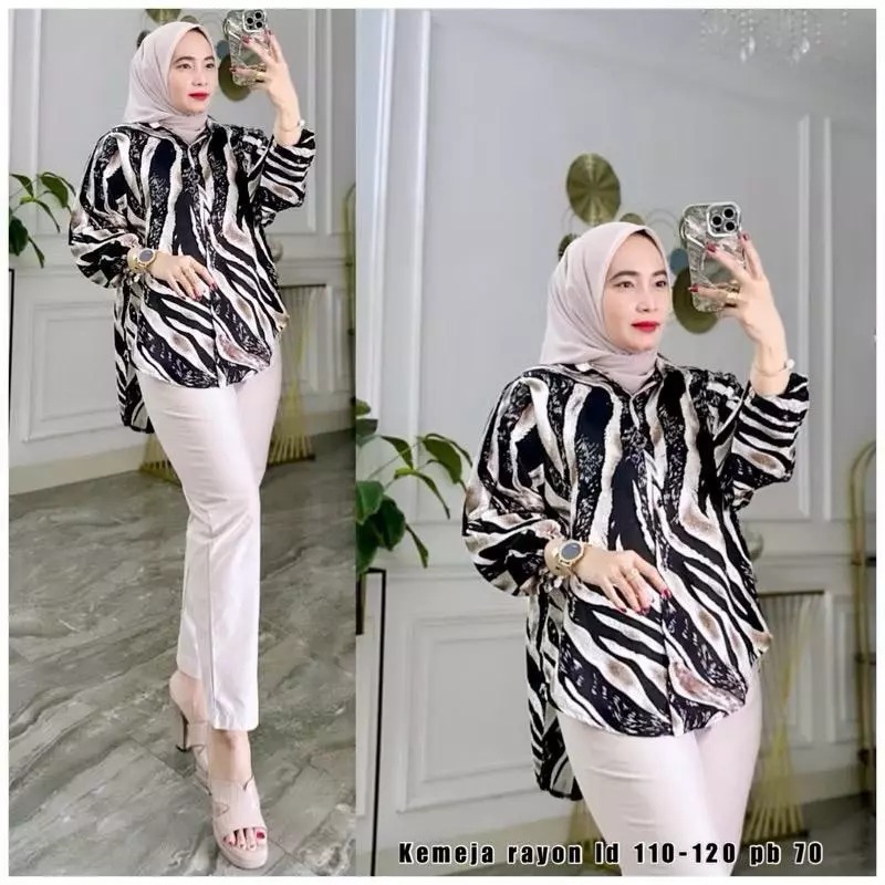 Batik Syarla Rayon Jumbo L Xl // Kemeja Kancing // Kemeja Motif // Kemeja Big Size // Atasan // Kemeja Wanita // Kemeja