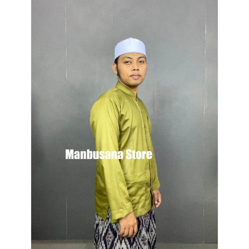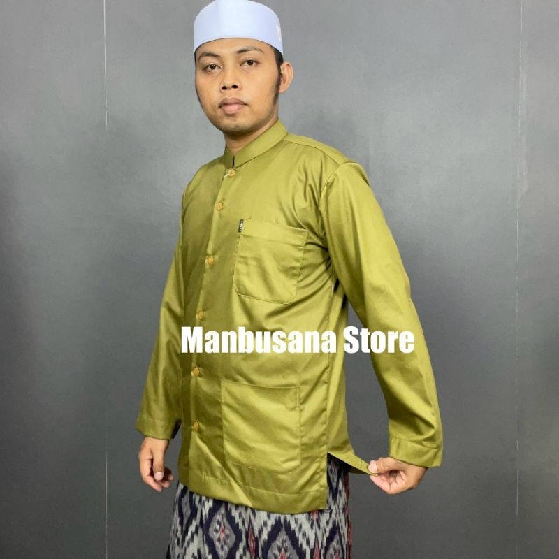 GROSIR Baju Koko Almahi Saku Depan Bawah Kerah Sanghai Muslim Pria Dewasa
