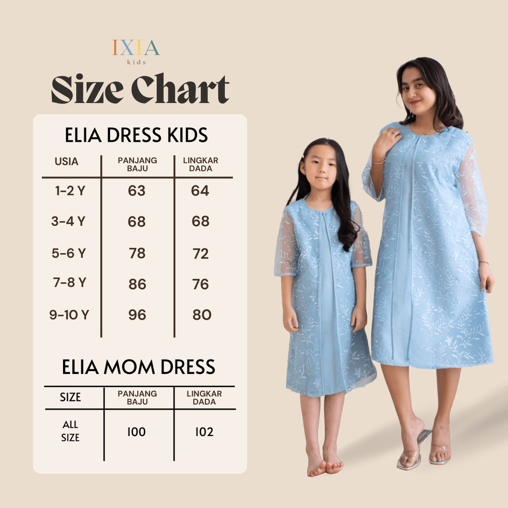 Elia Dress / Baju Dress Couple Ibu Anak Perempuan 1-10 Tahun