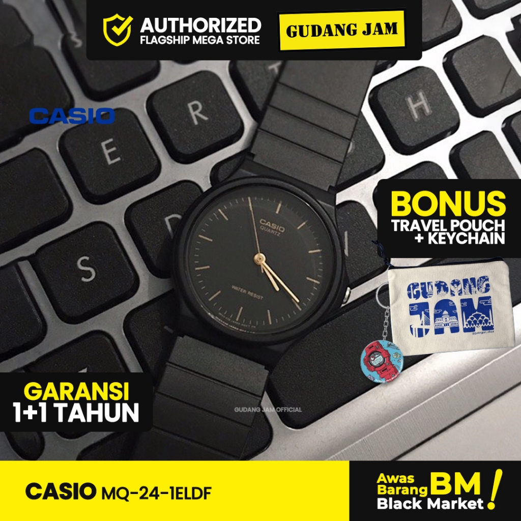 Jam Tangan Unisex Casio Original Mq-24-1Eldf Black Resin Band