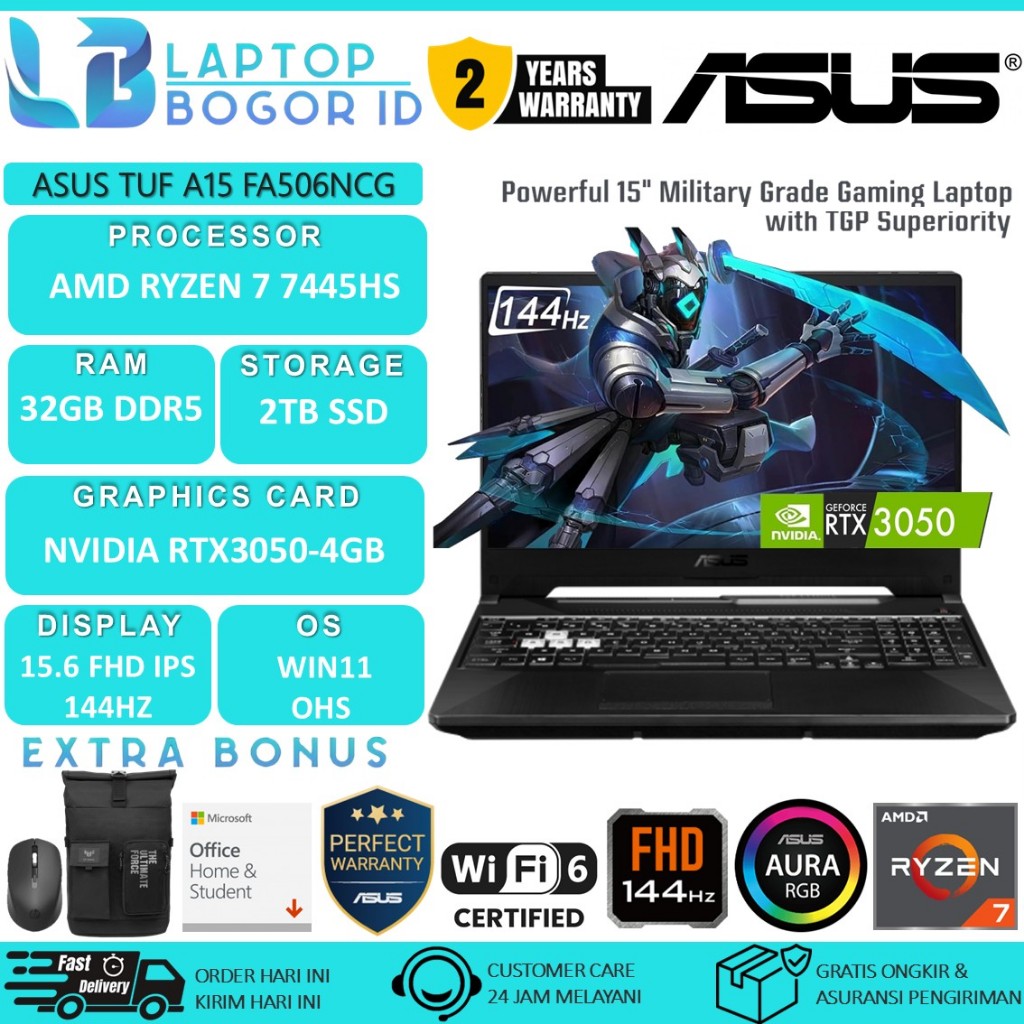 Laptop Gaming Asus TUF A15 FA506NCG AMD Ryzen 7 7445HS 32GB 2TB SSD RTX3050 FHD IPS 144Hz RGB Win11