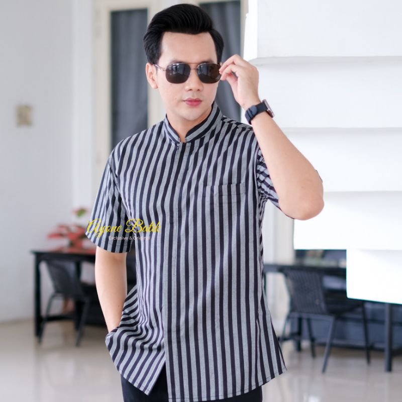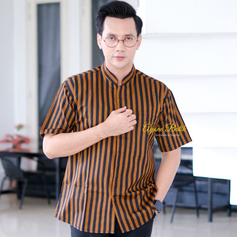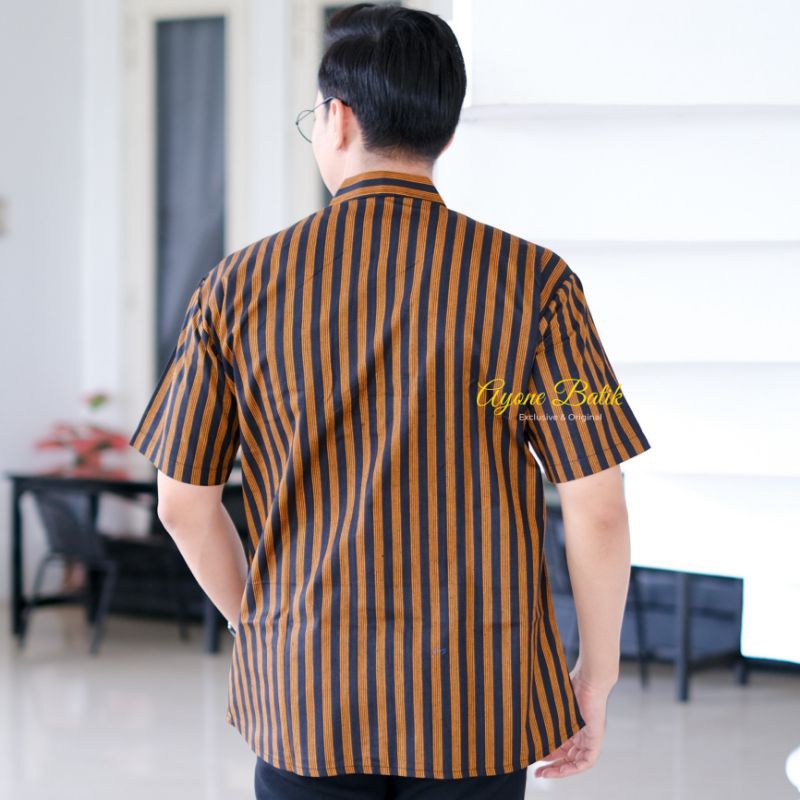 Baju Tradisional Pria Ekslusif Lengan Pendek Kemeja Lurik Pria Lengan Pendek Premium Bahan Tenun Berkualitas Adem Dan Ny