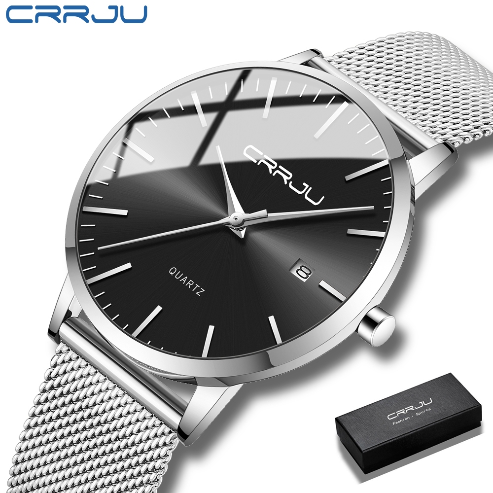 Jam Tangan Pria Crrju Casual Quartz Analog Stainless Steel Anti Air + Tanggal Bercahaya Jam Tangan Cowok 【With Box】