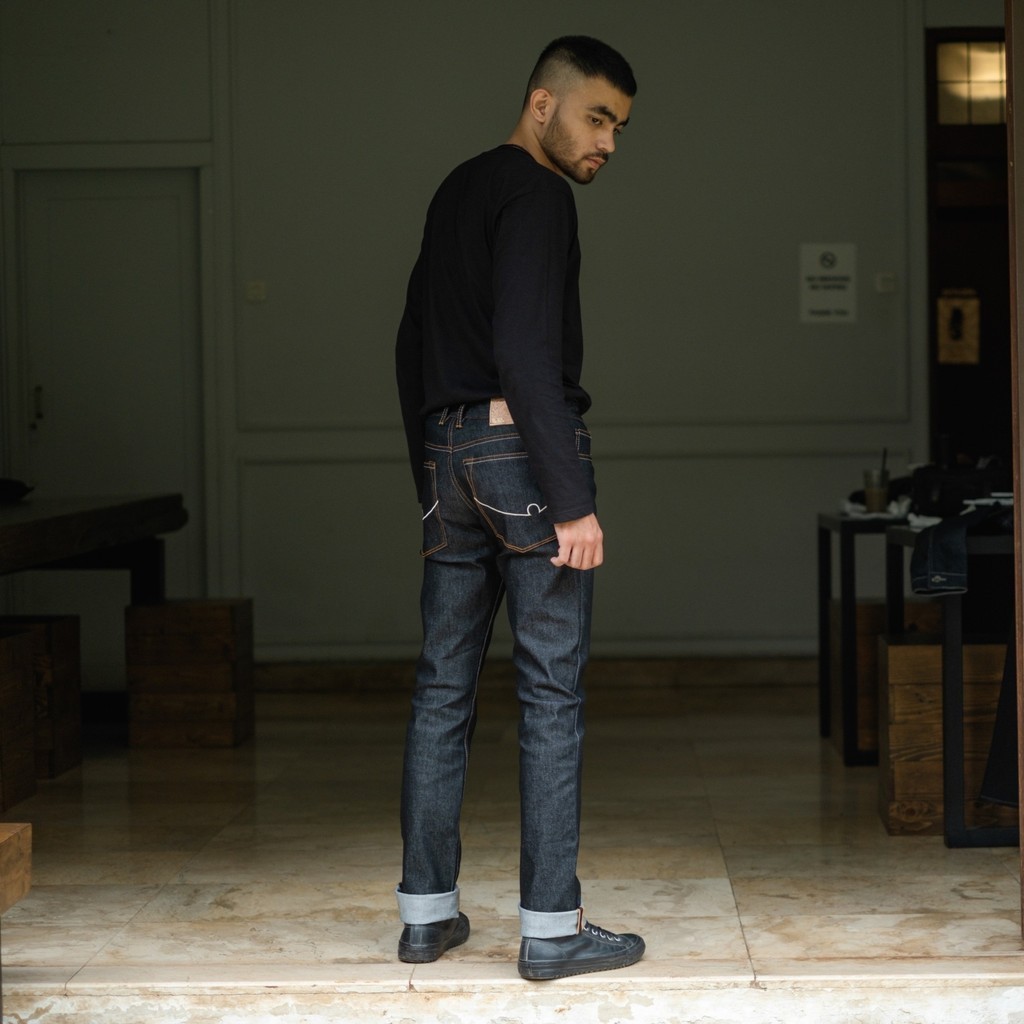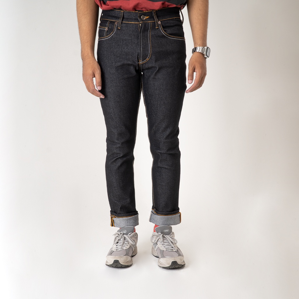 Black X Brown Denim 13Oz - Celana Denim Selvedge Accent Blue Black Denim Strecht 13Oz Raw Denim