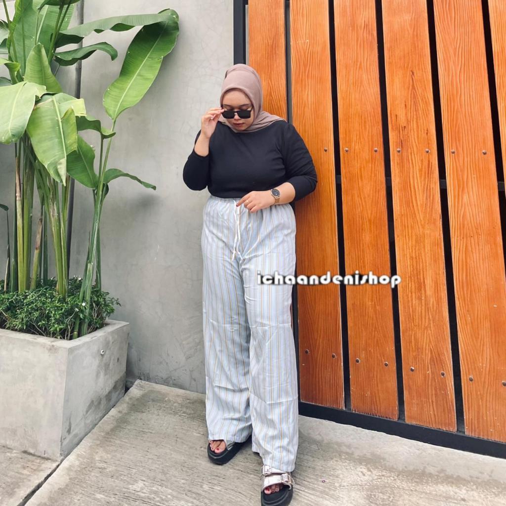 ICH - Kenny Pants - Everyday Pants - Stripe Pants - Celana Salur Kulot Jumbo Wanita Motif Salur Panjang Big Size