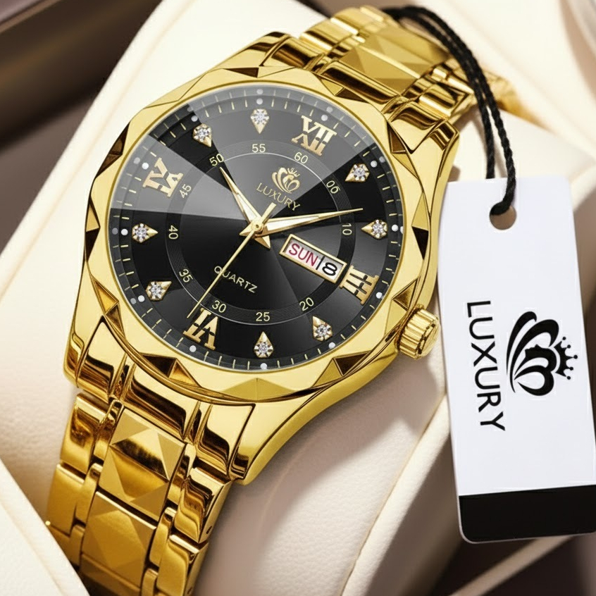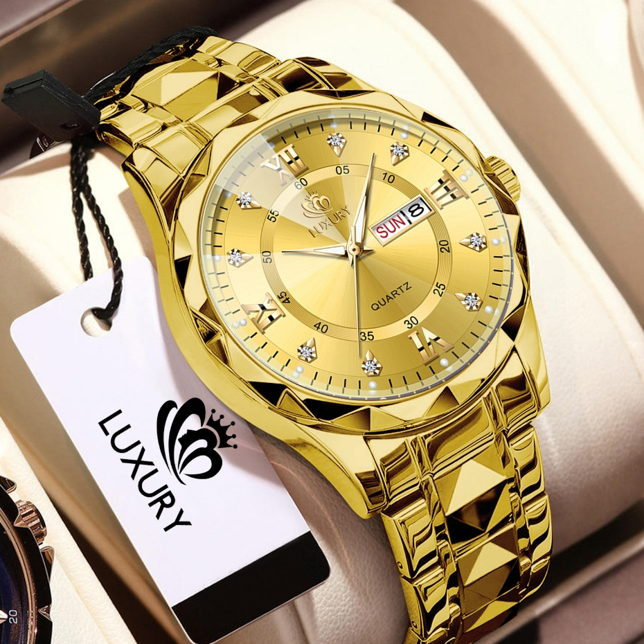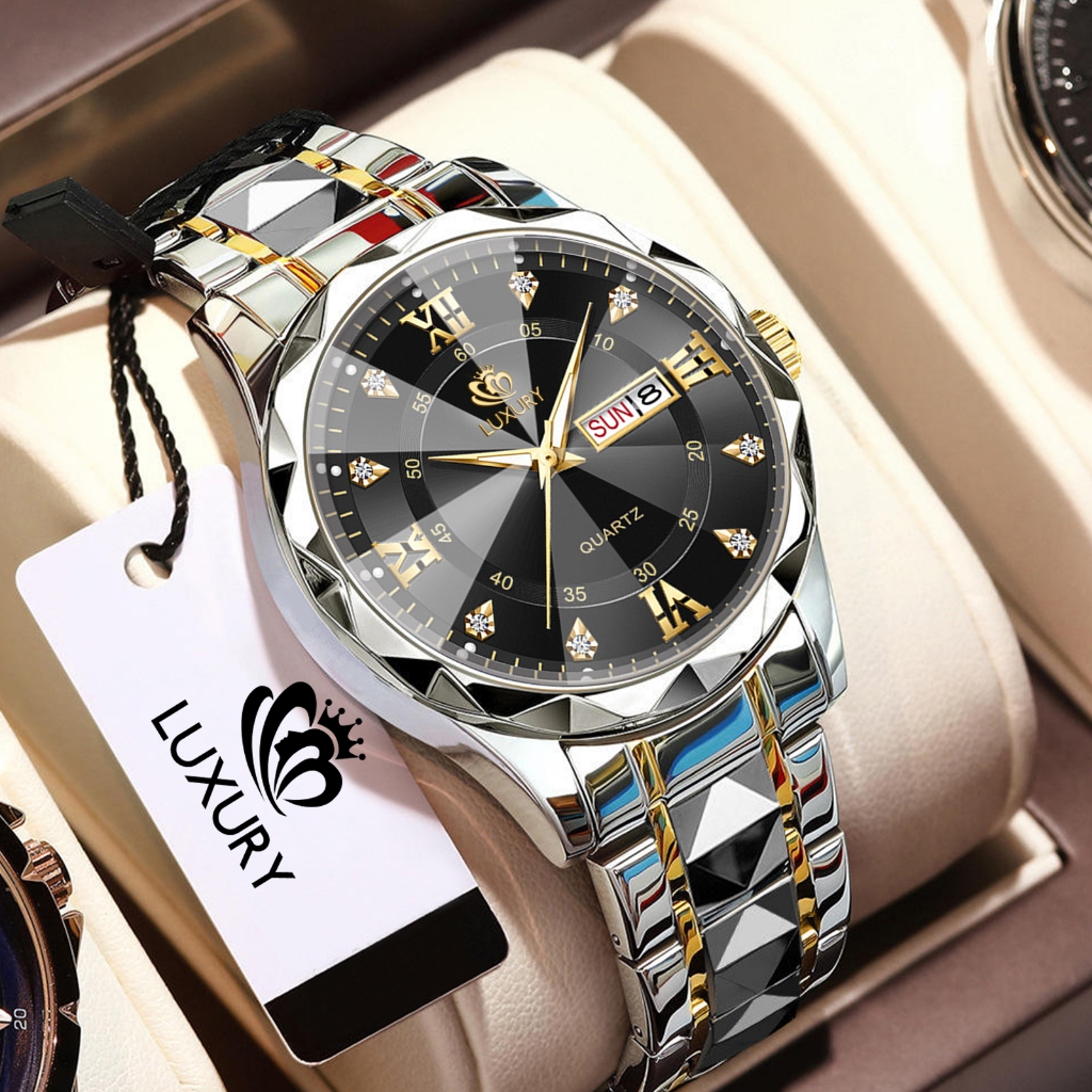 Jam Tangan Pria Luxury Anti Air Original Anti Karat Bercahaya Kalender Quartz Watch Men