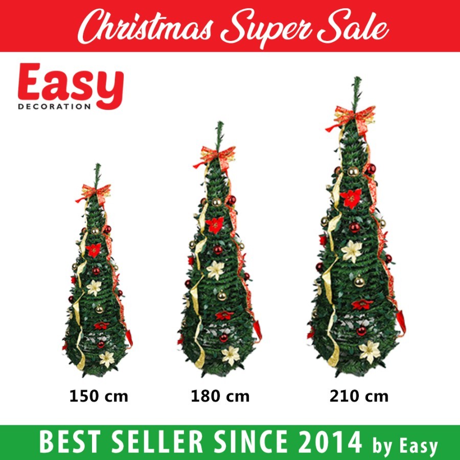 EASY DECORATION Pohon Natal Slinger Full Hiasan Pop Up Portable - Pohon Merry Christmas