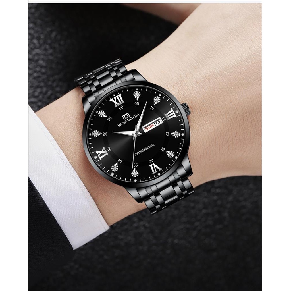 Jam Tangan Vavavoom Analog Date Pria 2461 Stainless Steel Water Resist Original + Free Box