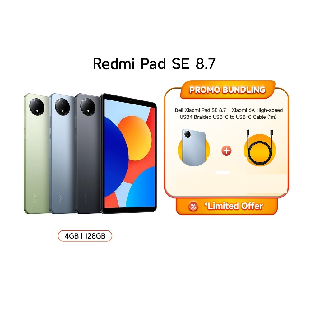 Xiaomi Redmi Pad SE 8.7 (4/128GB) Layar 8.7 Perlindungan Mata Refresh Rate 90Hz Baterai 6650mAh Prosesor Octa-Core
