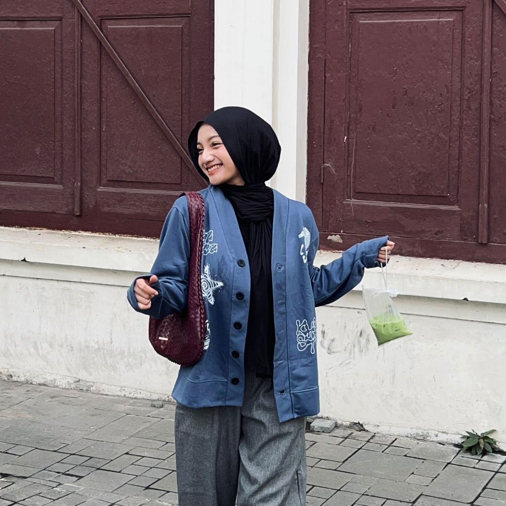 Cardigan Sea Fauna Black & Steel Blue | Oversize Outer | Lengan Panjang cardigan wanita cardigan wanita jumbo
