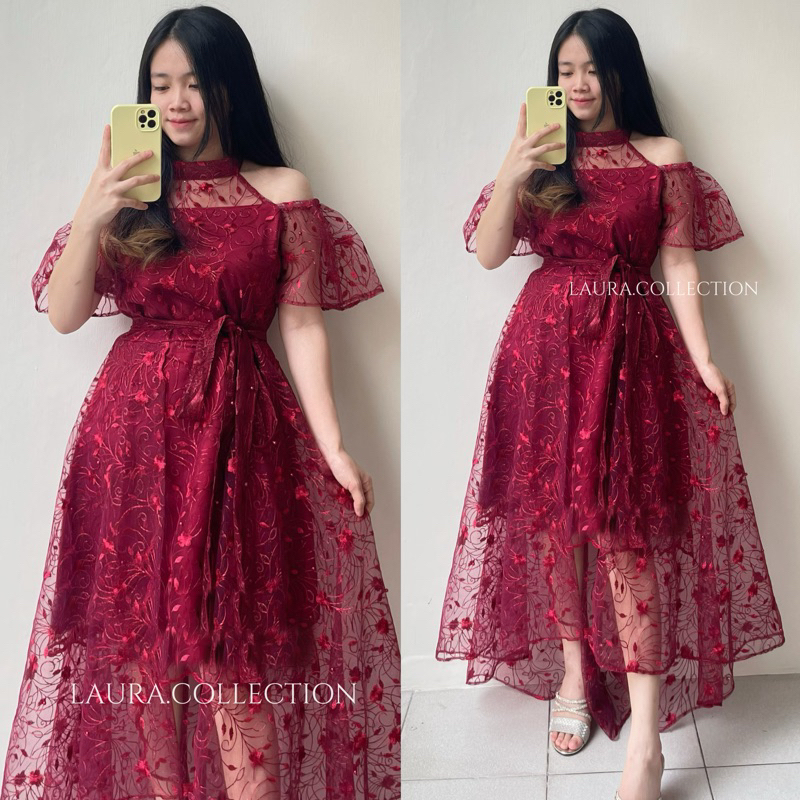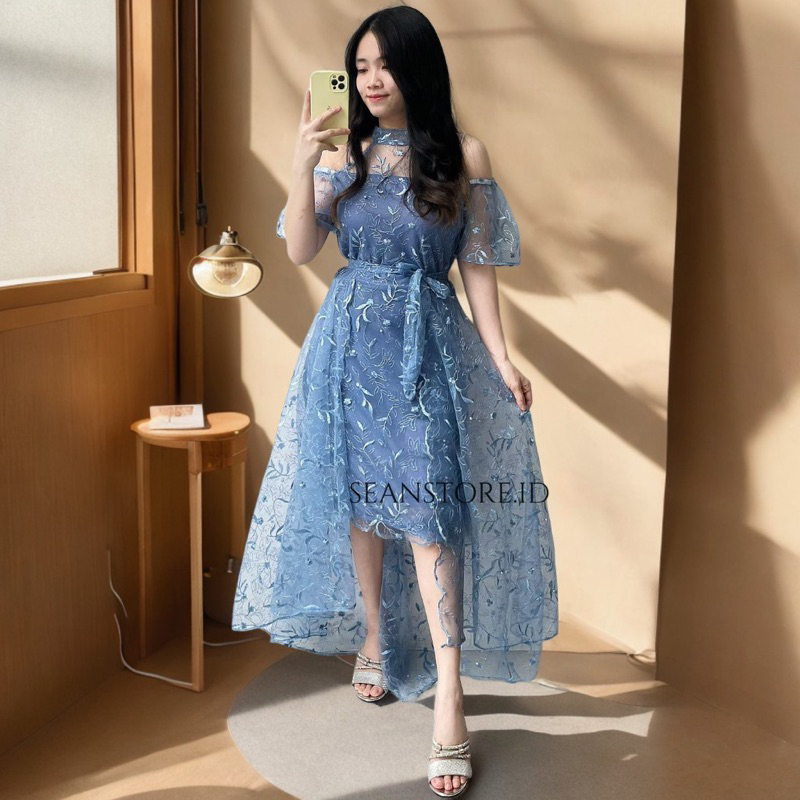 Glowy Dress Sabrina Wanita Elegant Anggun | Dress Bridesmaid Prewedding Pesta kondangan Imlek Dress Gereja Natal Terbaru