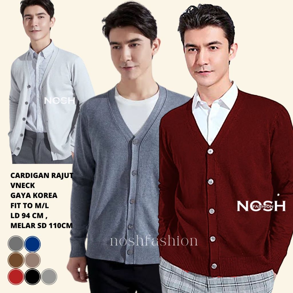 Cardigan Pria Rajut Vneck Korea Style Kekinian Kardigan Rajut Size M/L - Nosh