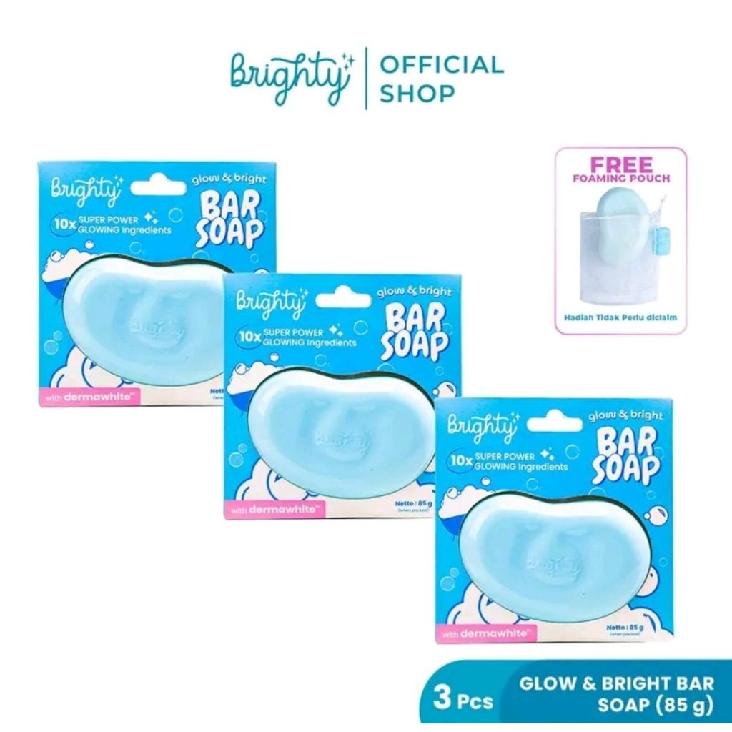 3 PCS Brighty Glow Bright Bar Soap + free PouchJika Stok Tersedia || Sabun Mandi Pencerah dan Pemutih Badan