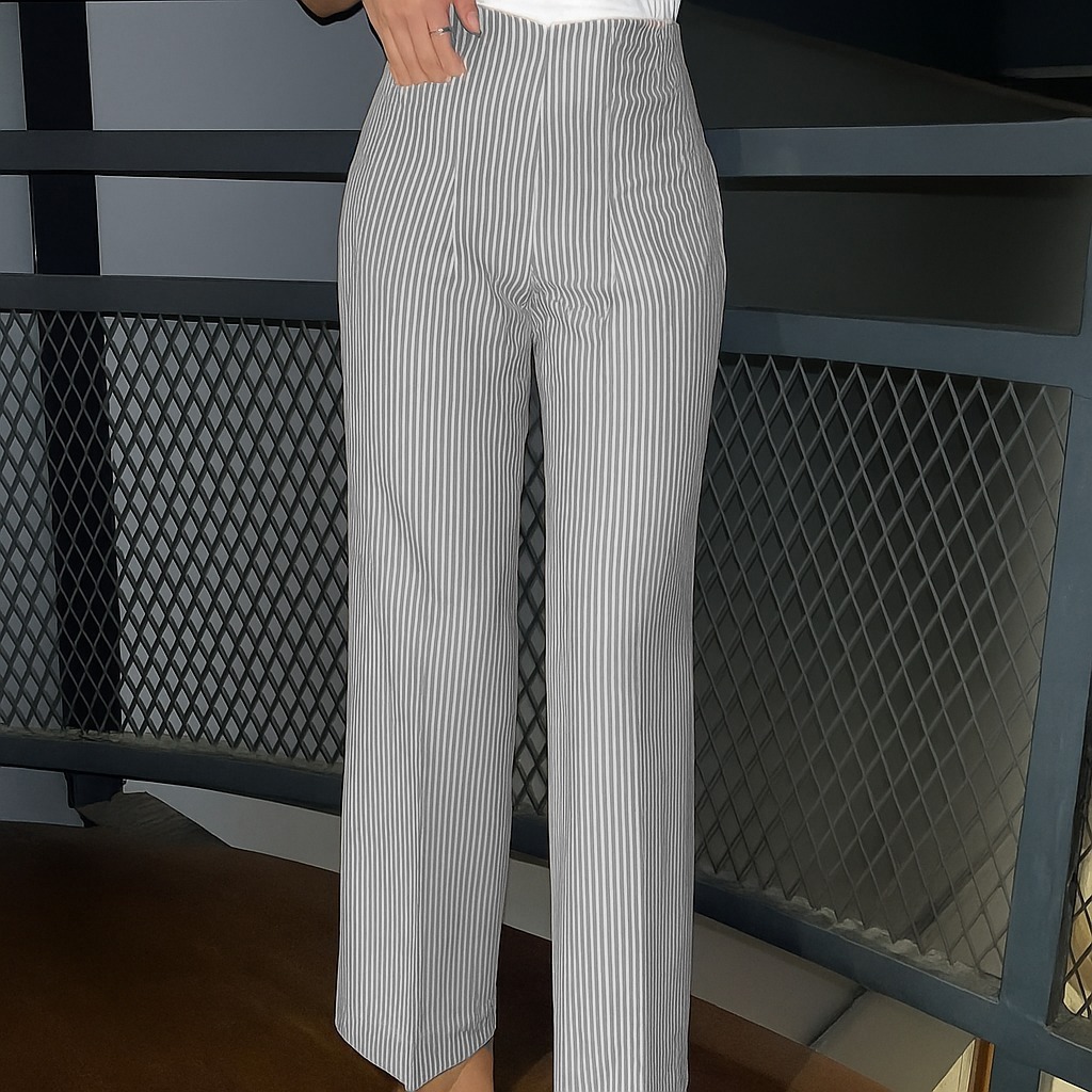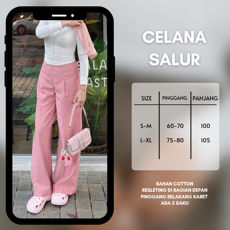 Fatayana Celana Kulot Panjang Salur Wanita Motif Garis High Waist Bahan Semiwoll Kekinian V2