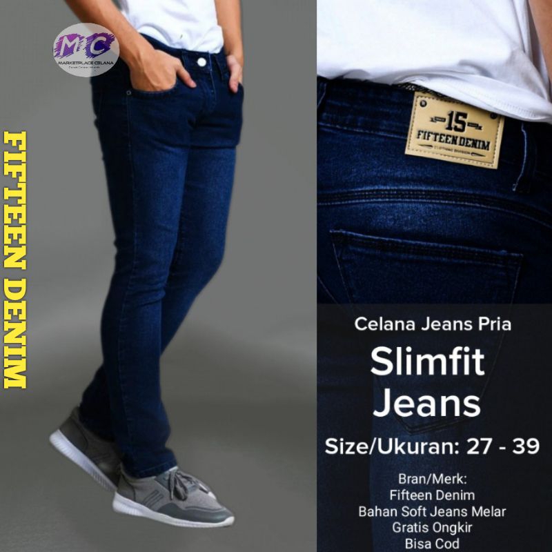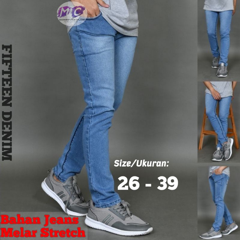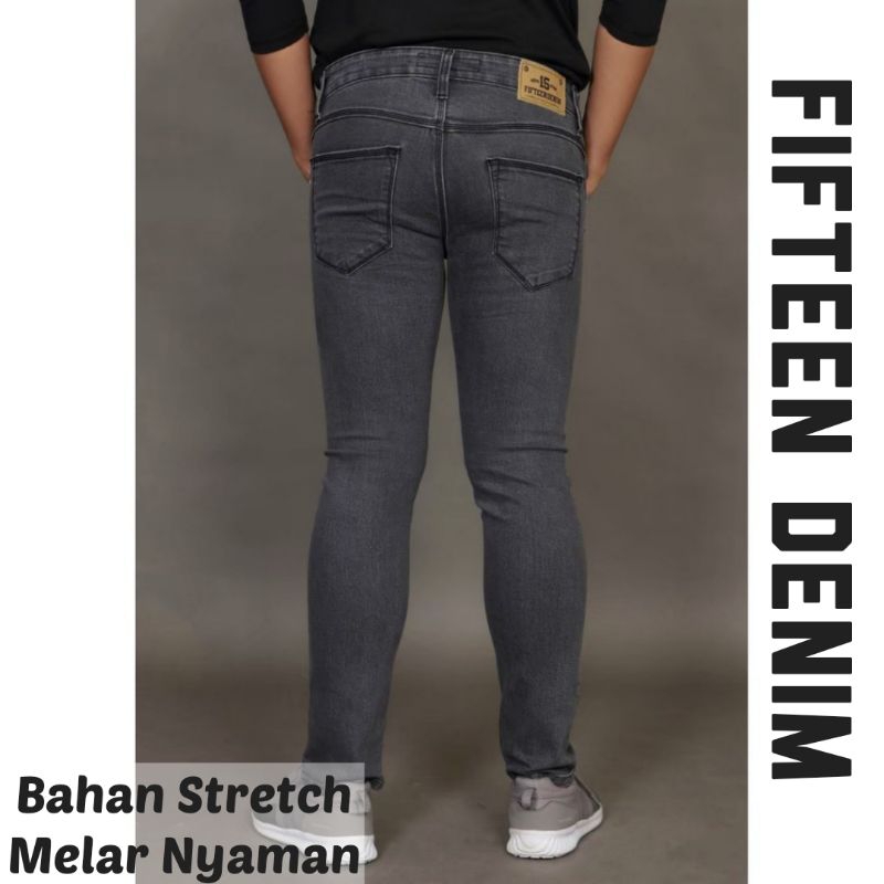 Celana Jeans Hitam Pria Fifteen Denim Jeans Panjang Pensil Skinny Semi Slim Fit Cowok Cowo Pria Bahan Denim Stretch Terb