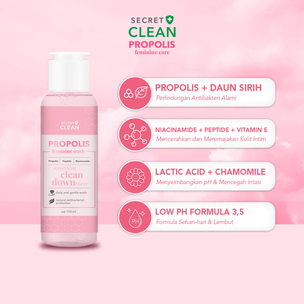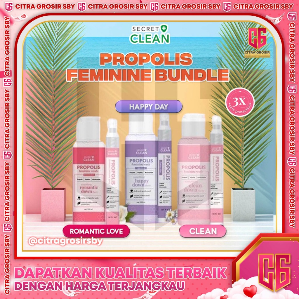 SECRET CLEAN Paket Propolis Feminine Care || Feminime Wash 100ml & Intimate Spray 8ml Series || Romantic Love || Happy D