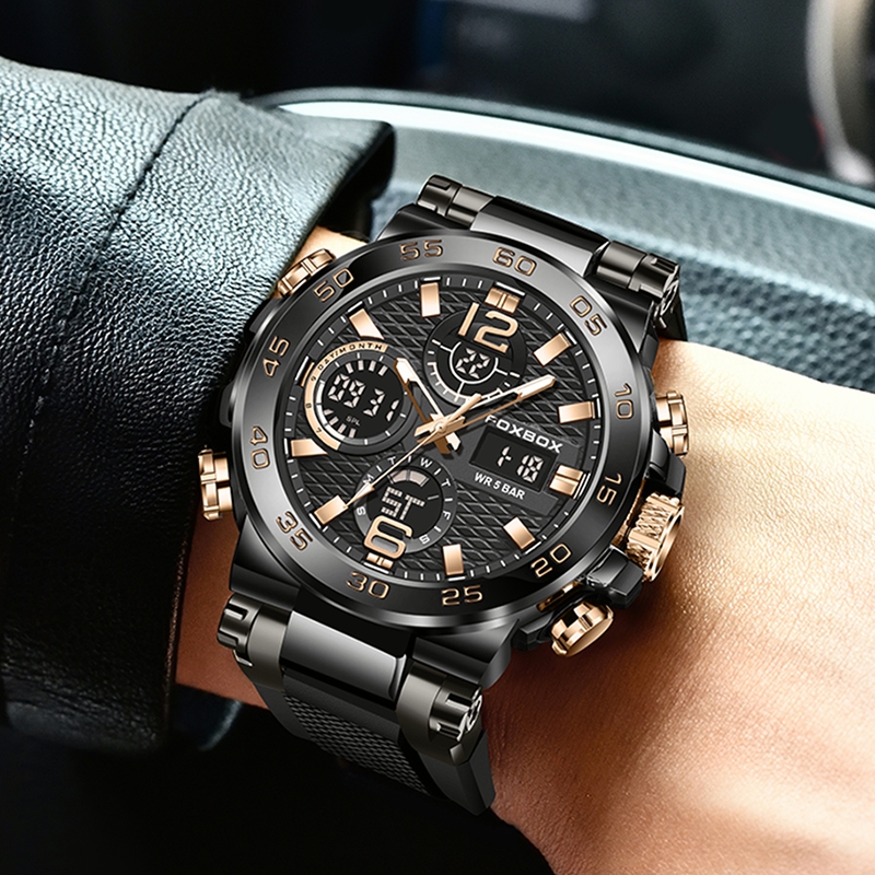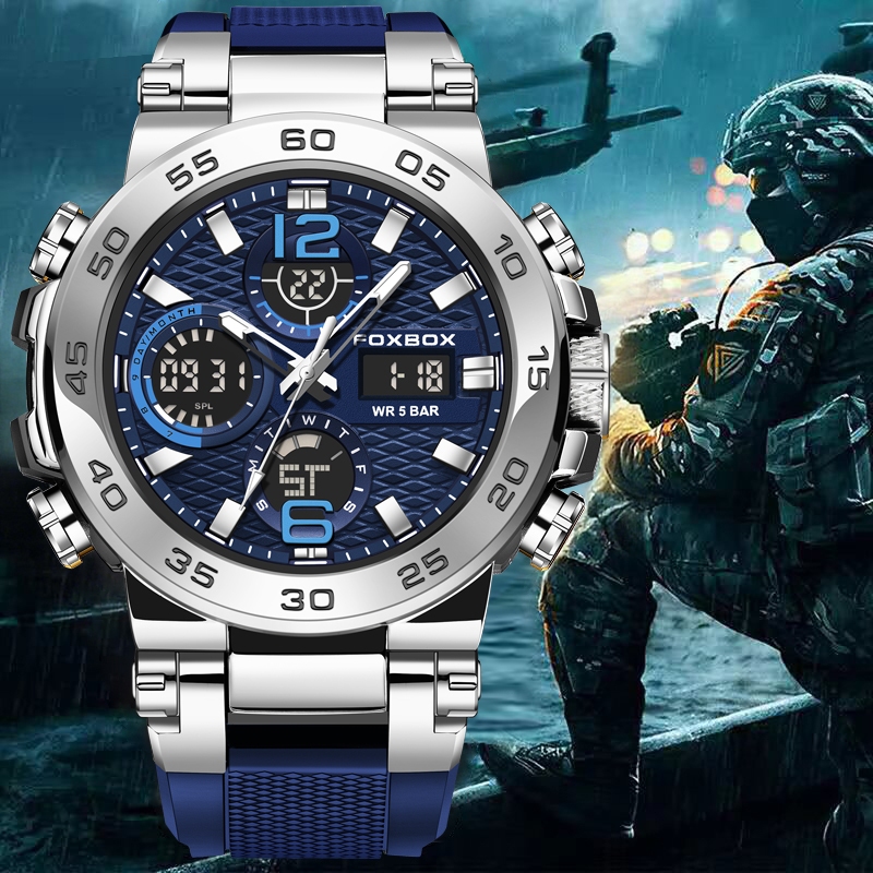 Lige Jam Tangan Digital Led Dual Display Asli Jam Tangan Olahraga Pria Tahan Air Jam Tangan Kuarsa Chronograph Watch