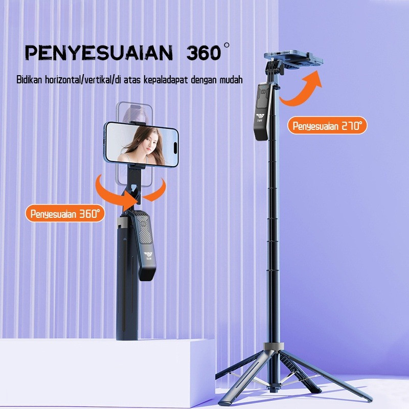 MAYY P19 Tongsis Tri Bluetooth 1.8m Fill light Tongsis Tri Remote Tongsis hp Selfie Stick Bluetooth 4in1 Tongsis Gimbal