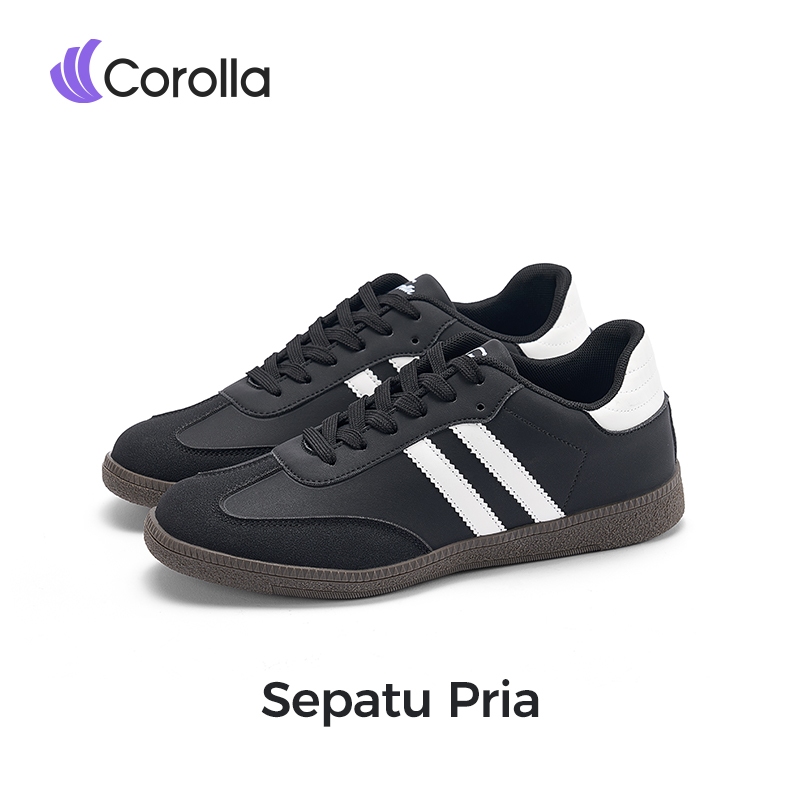 Corolla Sam-Ba Sepatu Sneakers Pria Sepatu Kerja Fashion Berkualitas Tinggi Warna Hitam Cream Samba Cowok Sepatu Tali Ca