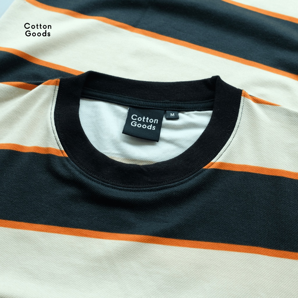 Cotton Goods Kaos Oversized Striped Twill Spandex Cleano Black Cream Orange Tees