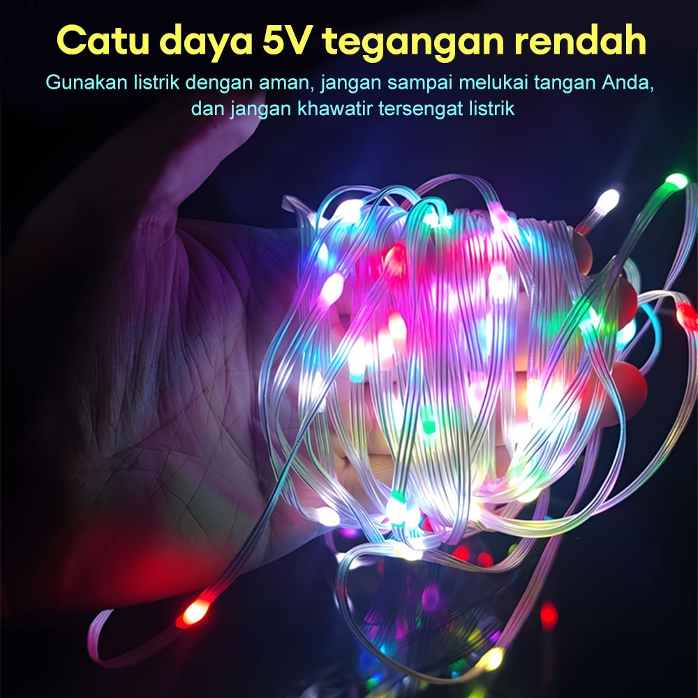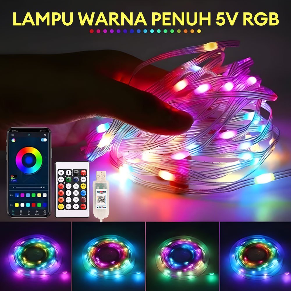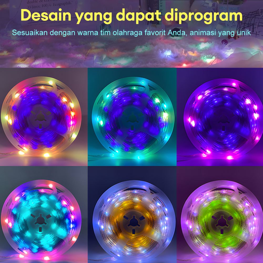 Lampu LED Hias Strip 10 Meter RGB dengan Sensor Suara, Remote dan Bluetooth untuk Natal dan Taman Outdoor