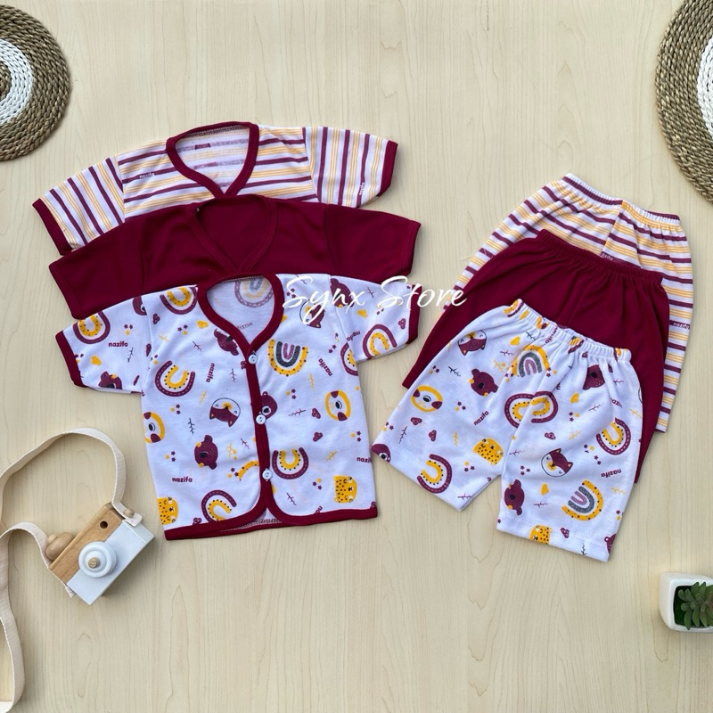 SATU SET PAKAIAN BAYI Paket 3 Set / 6 Pcs Baju Bayi Tangan Pendek Untuk Bayi 0-3 Bulan Unisex Laki Dan Perempuan