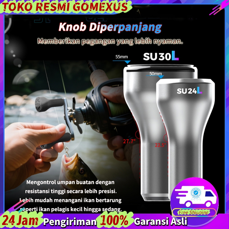 Gomexus Kenop Genggam Inovatif 24/30mm Handle Knob Aluminium Alloy untuk Reel Spinning Shimano & Daiwa Alur Anti-Selip Desain Bulat SU24L