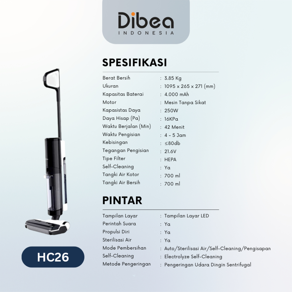 Dibea Floor Washer HC26 Smart Wet Dry Cordless Stick Handheld Vacuum Cleaner and Floor Washer