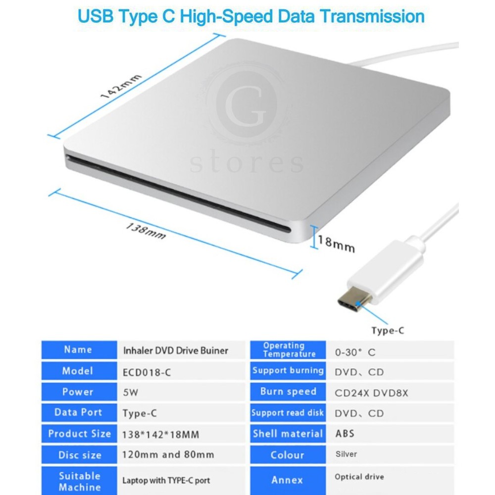 Super Slim Eksternal DVD RW USB Type C CD/DVD ROM DVD RW External Optical Drive