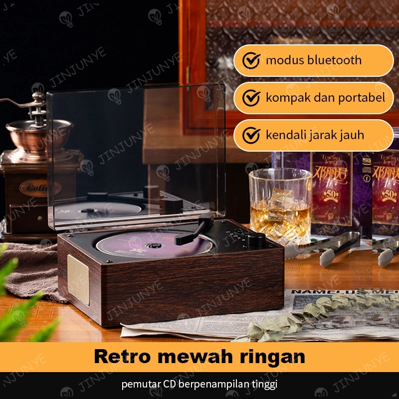 Portable Bluetooth CD Player Pemuter CD Retro Stereo Sound USB Drive Input/Output Aux Music Player JINY